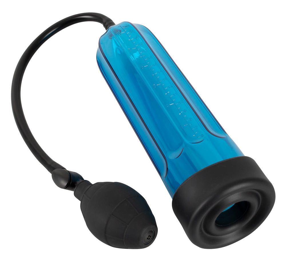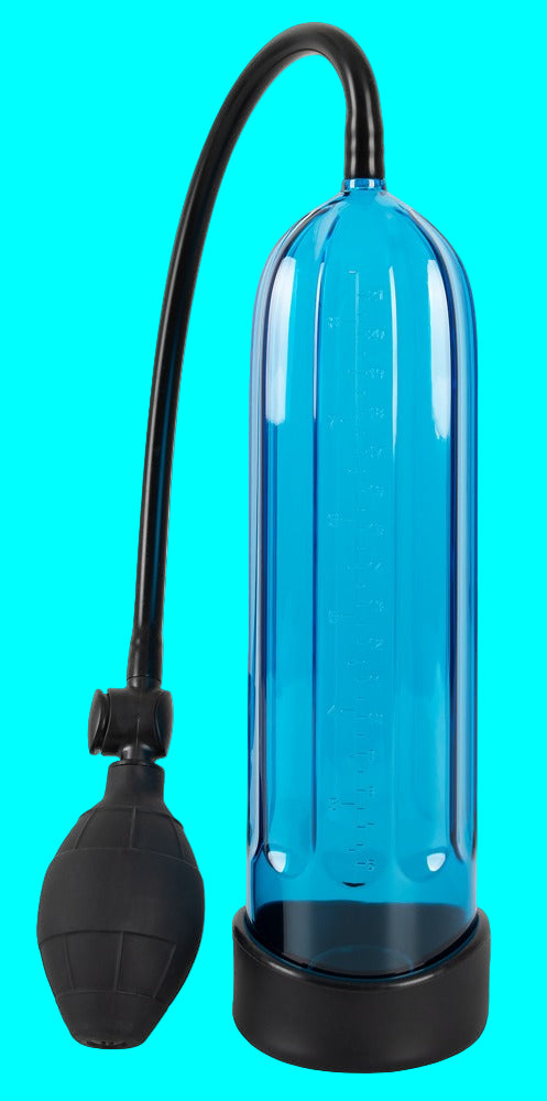 Say Hello... Unlock your confidence with this sleek, blue-transparent penis pump designed to support potency and enhance pleasure. The clear cylinder features an easy-to-read measurement scale, so you can track your progress every step of the way. A handy ball hand pump makes adjusting suction a breeze, while the soft, stretchy silicone sleeve ensures a snug, comfortable fit.